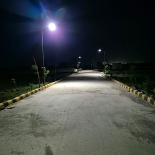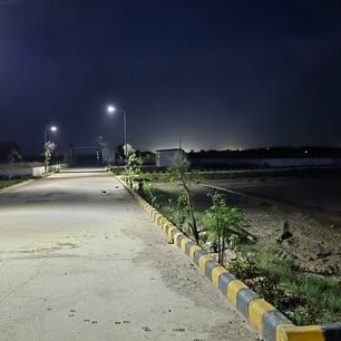 Wide internal roads (40 ft. & 25 ft.), black pitch roads, and electricity poles.